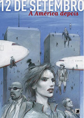 “12 de Setembro – A América Depois”, é um volumoso álbum que mescla crônicas, contos, charges e quadrinhos de aclamados quadrinistas, jornalistas, chargistas e escritores, não somente dos EUA, como de outras localidades do mundo, mostrando também a visão das pessoas que não estiveram especificamente no local do atentado de 11 de Setembro de 2001. A capa,  assinada pelo cineasta, roteirista e ilustrador francês Enki Bilal, mostra certa semelhança ao estilo de Moebius, pseudônimo do também francês Jean Giraud. “12 de Setembro” é o trabalho mais denso que conheço sobre opiniões e diferentes visões sobre o atentado, mostrando também preocupação com o futuro dos EUA, o qual destaco o trabalho de Joe Sacco, ganhador do American Book Award de 1996, devido a sua série de reportagens em HQ agrupadas em “Palestina: na Faixa de Gaza” e “Palestina: uma nação ocupada”. Em “12 de Setembro”, Joe apresenta em quadrinhos o “Projeto Nostradamus”, o qual um aparelho que leva o título da história, revela um moderno capacete capaz de projetar imagens de como será os EUA nos próximos 40 ou 50 anos. E através deste equipamento, eles descobrem que a PEPSI criou um partido e ganhou as eleições, colocando a sua grande logomarca no topo da Casa Branca, deixando os republicanos e democratas caírem em desuso. Neste futuro, a marca Pringles, famosa por suas deliciosas batatas fritas cheias de calorias, das quais sou viciado :), também tem o seu partido. Com certeza uma metáfora sobre o poder das grandes marcas que influenciam e geram consumo exagerado, principalmente entre os mais jovens. Destaco também o magnífico “Conto de Natal”, escrito pelo romancista Jerome Charyn, escritor considerado pelo New York Newsday como o Balzac americano. O estilo de sua escrita é inigualável, difícil de encontrar hoje em dia. Nove páginas que já faz valer a leitura de todo o conjunto, não desmerecendo os outros trabalhos. Miles Hyman, artista americano nascido em Vermont, deixa a sua marca ilustrando esse belíssimo conto.