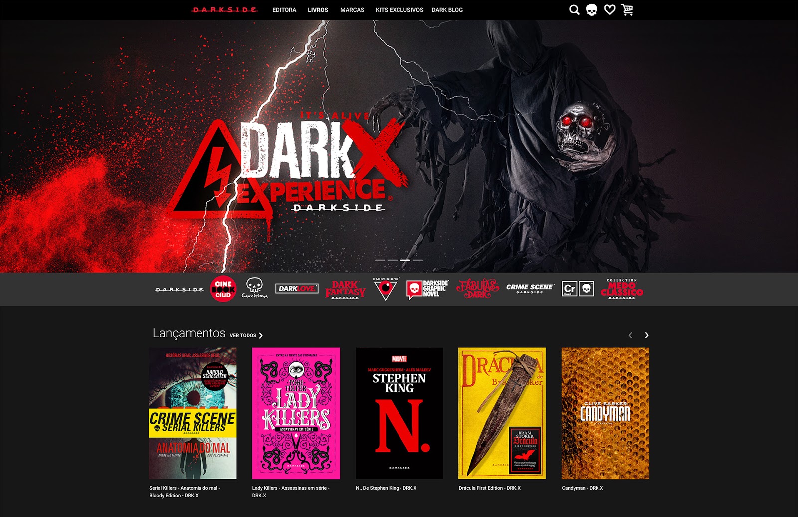 O novo site foi pensado nos mínimos detalhes para surpreender e facilitar a vida dos darksiders. Funcional e intuitivo, não é um modelo de loja virtual tradicional. Ele mantém boa parte do conteúdo da sua versão original agora organizada de uma maneira mais dinâmica e eficiente. Uma das grandes novidades é que nossas linhas editoriais cresceram e se tornaram verdadeiras marcas, com voz única e universos próprios. O objetivo é ampliar conceitos, conteúdos e experiências. É o universo dark reunido em um só lugar e em total expansão.
