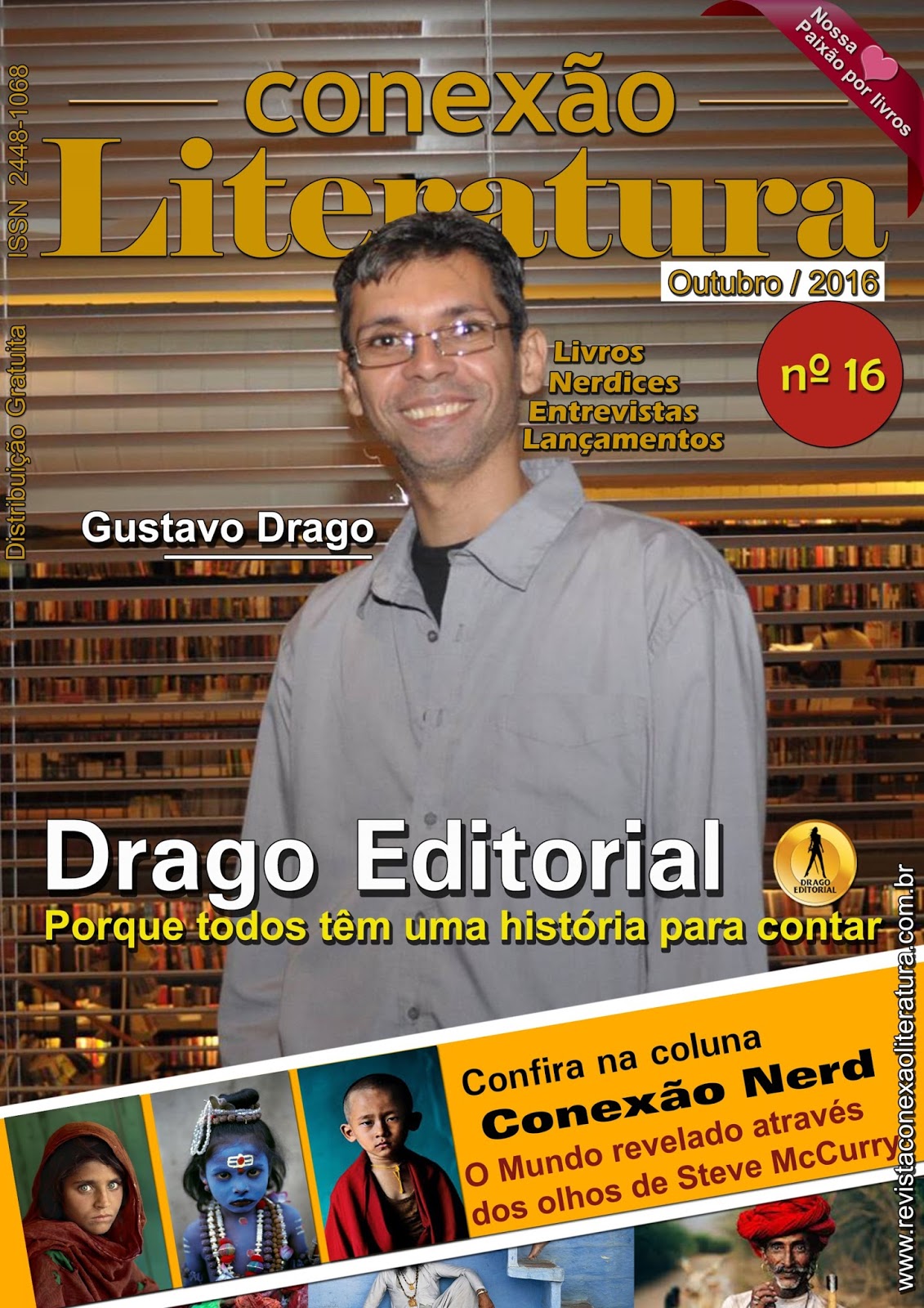 Nesta 16ª edição da revista Conexão Literatura, destacamos Gustavo Drago, editor da Drago Editorial, que já publicou 99 autores e que vem conquistando cada vez mais espaço no mercado editorial. Com muitas páginas (62), publicamos vários autores, tanto em entrevistas, como contos ou crônicas. As edições de Conexão Literatura estão sendo cada vez mais procuradas por autores, editoras e profissionais que trabalham na área, além de estarmos conquistando cada vez mais leitores. E é por isso que estamos trabalhando cada vez mais com afinco e dedicação 😉