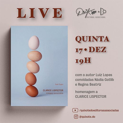 A Quixote+DO celebra o centenário de Clarice Lispector neste 2020 com uma nova abordagem sobre a escritora – conhecida por uma obra profunda e de personalidade um tanto enigmática. Agora, o professor e pesquisador Luiz Lopes rompe com a tradição de leituras da obra de Clarice, centrada no seu lado mais sombrio, e lança Clarice Lispector – Formas da Alegria. “Sim, alegria. Eis um dado que marca a originalidade dessa leitura”, atesta a escritora Nádia Battella Gotlib, uma das maiores especialistas na obra de Clarice Lispector. O lançamento acontece no dia 17 de dezembro, em encontro virtual com autor no canal do Youtube da editora: Quixote Do Editoras Associadas. A live será a partir das 19 horas.