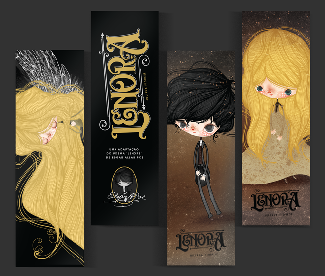 Juliana Fiorese: Eu escolhi Lenore principalmente por achar belíssima a mensagem que nos é transmitida sobre um tema tão difícil de enfrentar. O poema nos apresenta Guy de Vere, um rapaz apaixonado pela bela Lenore e que a perde tão jovem. Ele então considera inadequado lamentar os mortos e no mostra que deve-se, antes disso, celebrar sua ascensão a um novo mundo; isso me emociona demais, é muito bonito. Outro fato interessante é perceber que um personagem com o nome de Lenore (uma esposa falecida), é fundamental para “O Corvo”, seu poema mais famoso. Além disso, não encontrei muito material sobre o poema aqui no Brasil. Com muita facilidade encontramos livros ilustrados ou até mesmo histórias em quadrinhos de contos mais conhecidos como “O gato preto”, “A casa de Usher”, “O Assassinato na Rua Morgue” e até mesmo “O Corvo”.