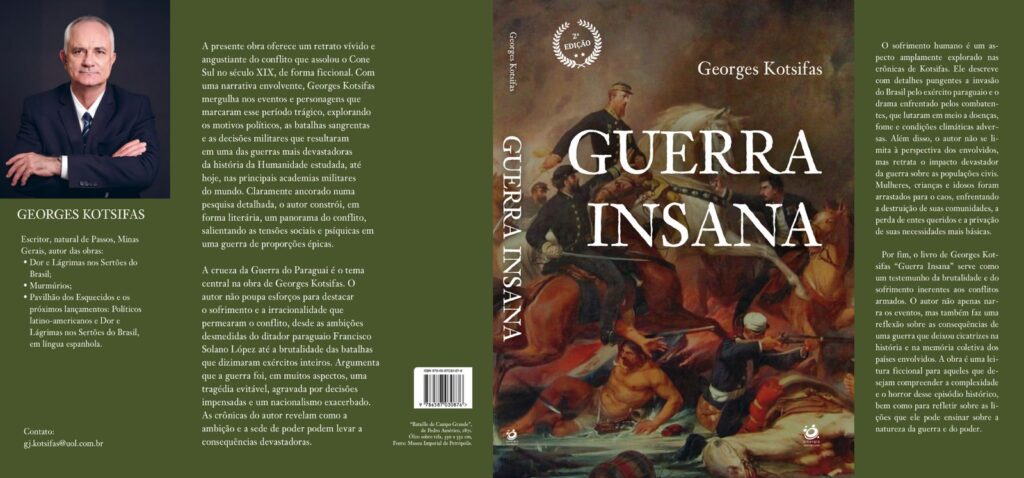Georges Kotsifas: Guerra Insana é um romance ambientado nos tempos da Guerra do Paraguay. Não é um romance sobre a guerra em si, mas não deixa de versar sobre episódios daquela epopeia militar, especialmente em seus aspectos humanos.