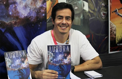 E em 2015, Folgosi conseguiu realizar seu sonho com o lançamento do Aurora, uma graphic novel de ficção científica que conta a história de um pescador que se transformou em um ser sobre-humano após ter presenciado um fenômeno natural nunca antes visto. “Tive essa ideia dez anos antes do lançamento, quando pensei como seria se alguém tivesse marcas de nascença e que formassem o mesmo padrão de uma constelação, ou seja, que tivesse o “mapa dos céus” gravado em seu corpo”, revela Felipe.