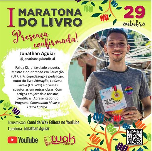 Ser o curador desse megaevento de modo virtual é um desafio, sobretudo, reunir mais de 100 autores em uma única plataforma em celebração ao Dia Nacional do Livro é de deixar a gente em ritmo de vibração, até porque esse projeto nasceu em parceria com meu editor-chefe e escritor Waldir Pedro. O editor que nos coloca em movimento em busca sempre de realização de sonhos. A Maratona nasce com Pedro e ela é gestada em nossas trocas na madrugada… o que você acha de uma maratona? Já topei! Comigo é desse jeito, às vezes nem penso na proporção de tempo, trabalho e investimento. A vida é pegar ou largar! O foco nesse dia é conectar, valorizar, promover um espaço de troca de conhecimentos, criações e muita leitura no dia 29 de outubro, que será transmitido ao vivo pelo Canal do YouTube da Wak Editora.