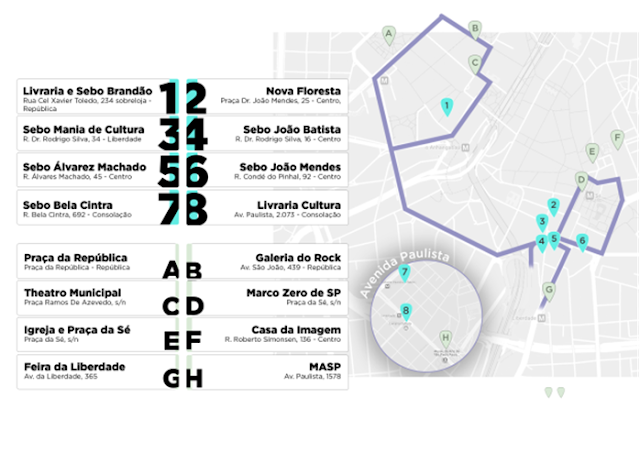 Os roteiros estão disponíveis no Google Maps e quem quiser também pode fazer download no site da Estante – https://www.estantevirtual.com.br/conteudo/roteiro-literario.