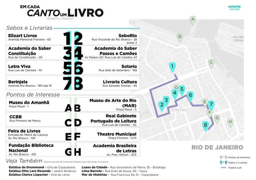 Os roteiros estão disponíveis no Google Maps e quem quiser também pode fazer download no site da Estante – https://www.estantevirtual.com.br/conteudo/roteiro-literario.