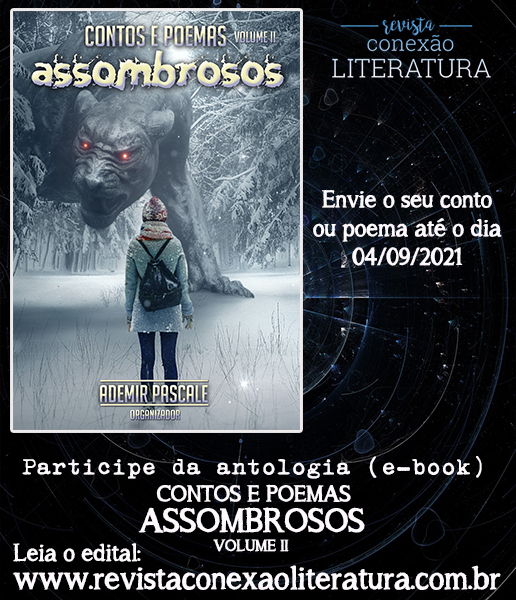 1 – Escrever um poema ou conto de terror (o tema é amplo e você poderá usar como personagens: bruxas, lobisomens, vampiros, fantasmas, feiticeiros, zumbis, etc). Aceitaremos até 2 contos ou 2 poemas por autor. Caso sejam aprovados, os 2 textos serão publicados.