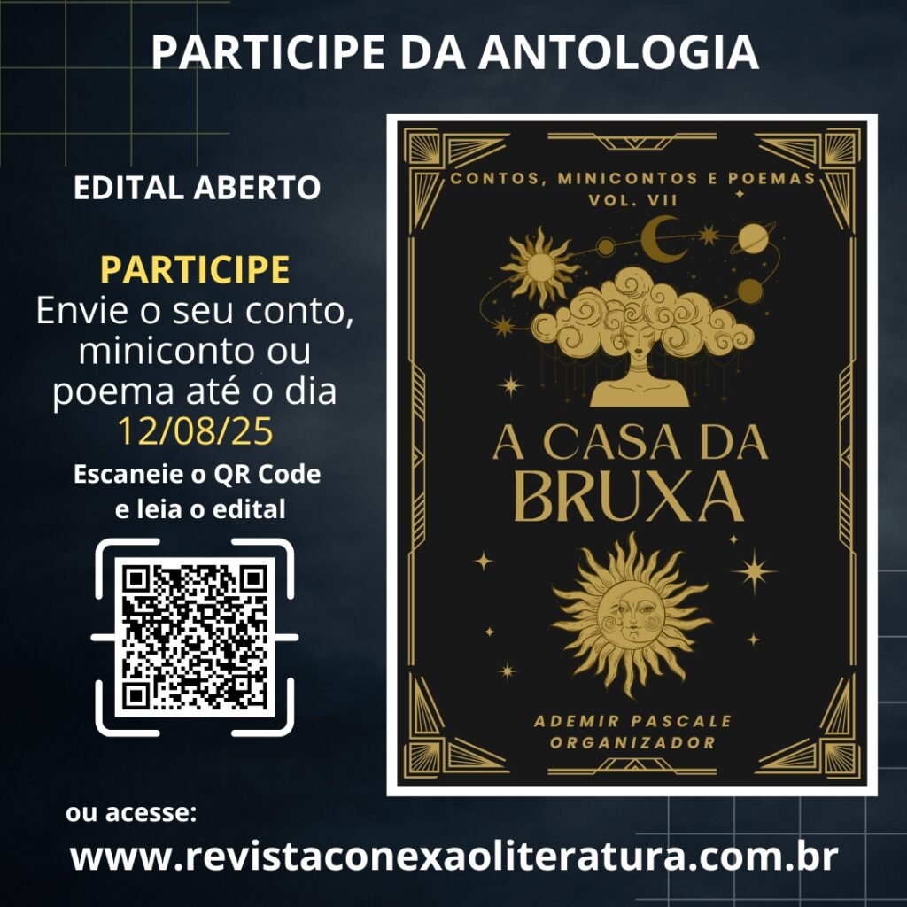 PARTICIPE DA ANTOLOGIA (E-BOOK): A CASA DA BRUXA – VOL. VII POR FAVOR, LEIA TODO O EDITAL REGRAS PARA PARTICIPAÇÃO NA ANTOLOGIA DIGITAL A CASA DA BRUXA – VOL. VII 1 – Escreva um miniconto, poema ou conto sobre bruxas(os) ou sobre o universo das bruxas(os); gato preto, florestas mal-assombradas, poções mágicas, etc. Aceitaremos até 5 minicontos, […]