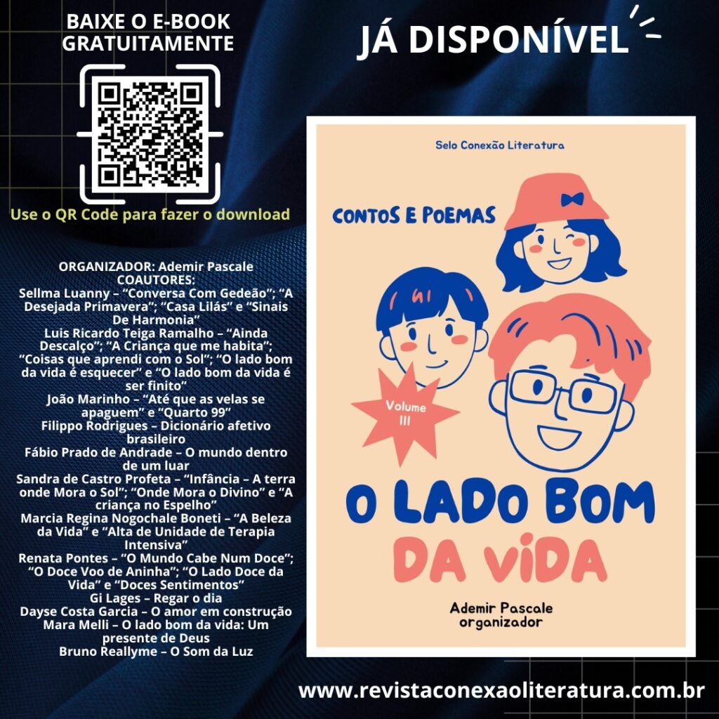 PARA BAIXAR O E-BOOK GRATUITAMENTE: CLIQUE AQUI. SAIBA COMO DIVULGAR O SEU LIVRO, EVENTO OU LANÇAMENTO AQUI NA REVISTA CONEXÃO LITERATURA: CLIQUE AQUI Ademir PascalePaulista, escritor e ativista cultural, casado com a publicitária Elenir Alves e pai de dois meninos. Criador e Editor da Revista Conexão Literatura (https://www.revistaconexaoliteratura.com.br) e colunista da Revista Projeto AutoEstima (http://www.revistaprojetoautoestima.com.br). Chanceler na […]