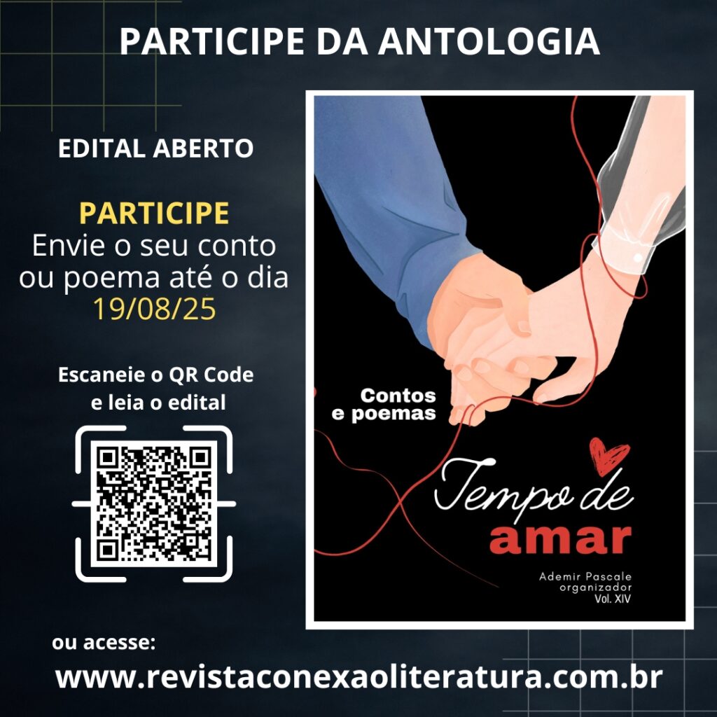 PARTICIPE DA ANTOLOGIA (E-BOOK): TEMPO DE AMAR – CONTOS E POEMAS – VOL. XIV POR FAVOR, LEIA TODO O EDITAL REGRAS PARA PARTICIPAÇÃO NA ANTOLOGIA DIGITAL TEMPO DE AMAR – CONTOS E POEMAS – VOL. XIV 1 – Escreva um poema ou conto sobre amor ou amizade (livre). Aceitaremos até 5 contos ou poemas por autor. Caso […]