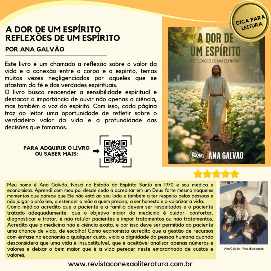 PARA ADQUIRIR O LIVRO OU SABER MAIS:AMAZON: https://a.co/d/dTwgixr Ademir PascalePaulista, escritor e ativista cultural, casado com a publicitária Elenir Alves e pai de dois meninos. Criador e Editor da Revista Conexão Literatura (https://www.revistaconexaoliteratura.com.br) e colunista da Revista Projeto AutoEstima (http://www.revistaprojetoautoestima.com.br). Chanceler na Academia Brasileira de Escritores (Abresc). Associado da CBL (Câmara Brasileira do Livro). Já foi […]