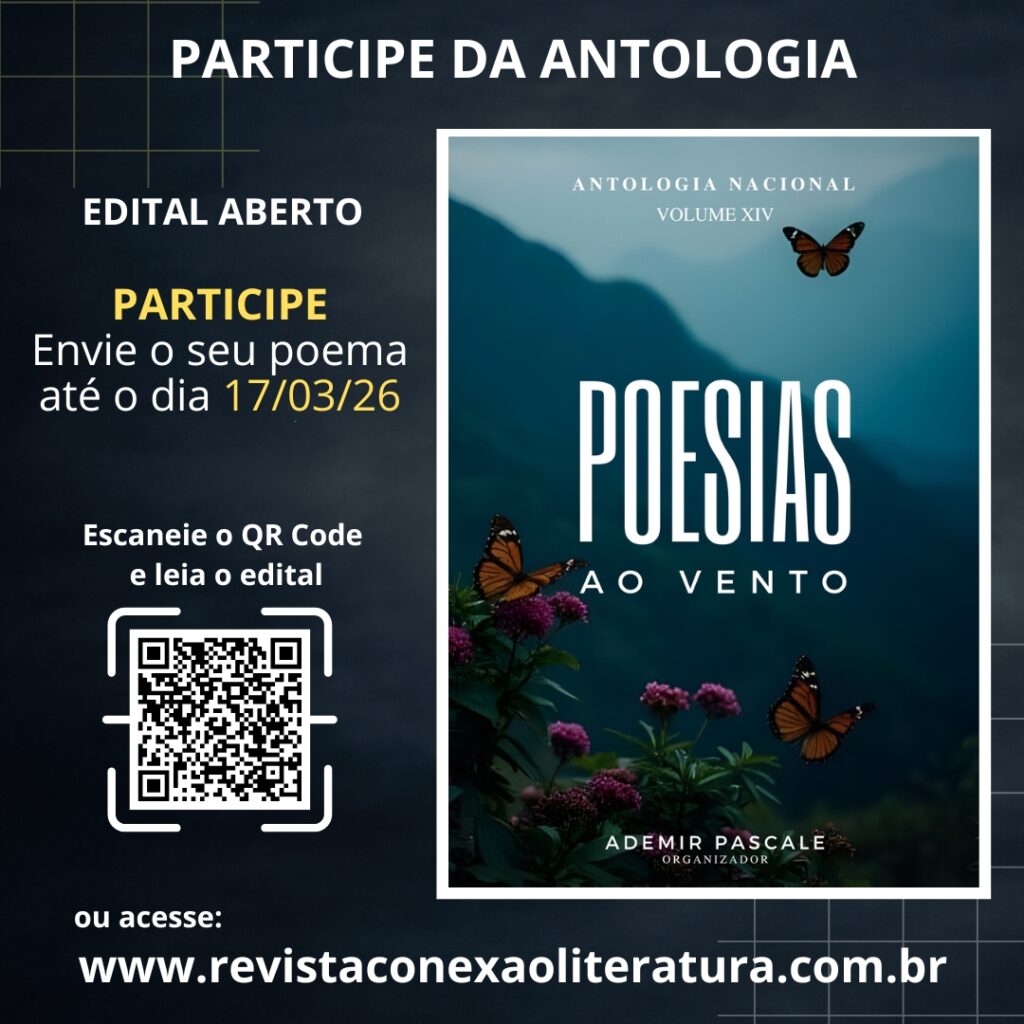 PARTICIPE DA ANTOLOGIA (E-BOOK): POESIAS AO VENTO – VOL. XIV POR FAVOR, LEIA TODO O EDITAL REGRAS PARA PARTICIPAÇÃO NA ANTOLOGIA DIGITAL POESIAS AO VENTO – VOL. XIV 1 – Escreva um poema sobre qualquer tema (livre). Aceitaremos até 5 poemas por autor. Caso sejam aprovados, os 5 textos serão publicados. 2 – SOBRE O POEMA: até 4 […]