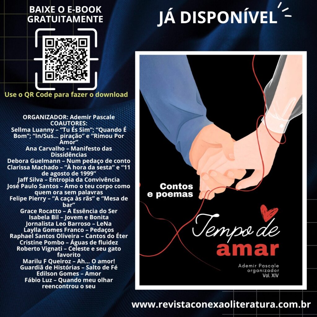 PARA BAIXAR O E-BOOK GRATUITAMENTE: CLIQUE AQUI. SAIBA COMO DIVULGAR O SEU LIVRO, EVENTO OU LANÇAMENTO AQUI NA REVISTA CONEXÃO LITERATURA: CLIQUE AQUI Ademir PascalePaulista, escritor e ativista cultural, casado com a publicitária Elenir Alves e pai de dois meninos. Criador e Editor da Revista Conexão Literatura (https://www.revistaconexaoliteratura.com.br) e colunista da Revista Projeto AutoEstima (http://www.revistaprojetoautoestima.com.br). Chanceler na […]